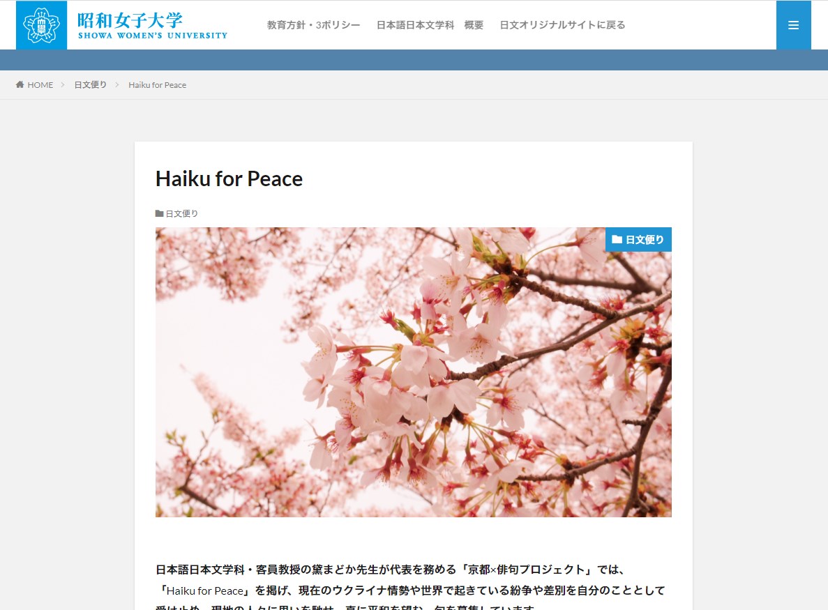 昭和女子大のブログで「Haiku for peace」の取り組みをご紹介いただきました