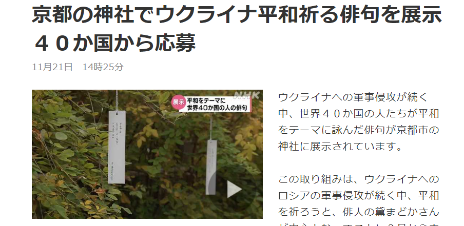Haiku for peaceにお寄せいただいた句とメッセージのご紹介 京都×俳句プロジェクト「Ha...